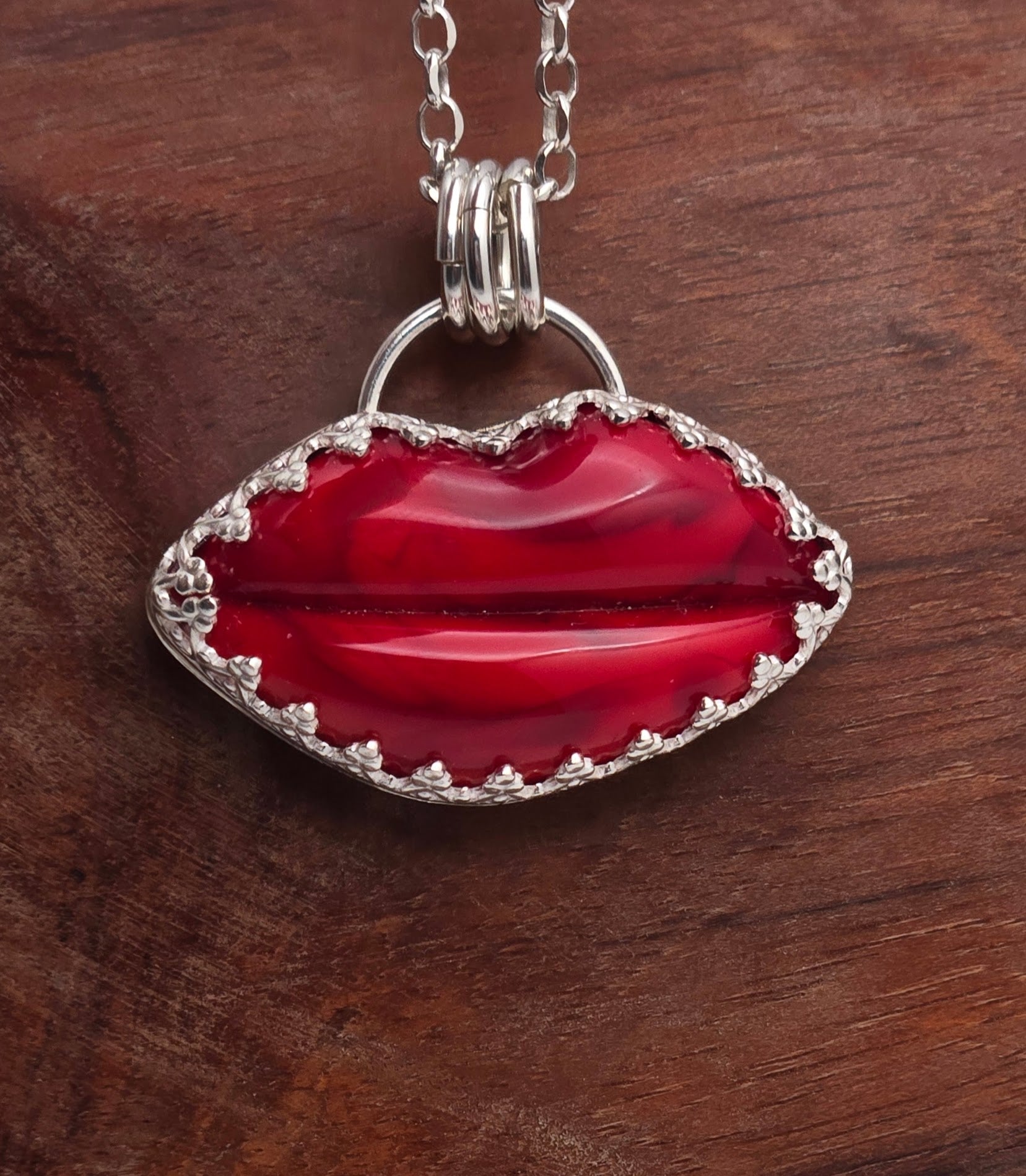 Lamp work Glass Red Lips Pendant